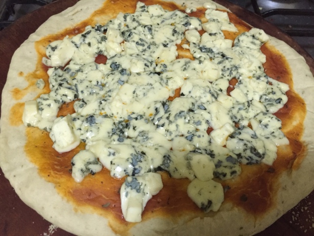 preparas el bolla para la masa de la pizza.lo dejas leudar mientras haces un pesto y cortas los tomates en rodajas